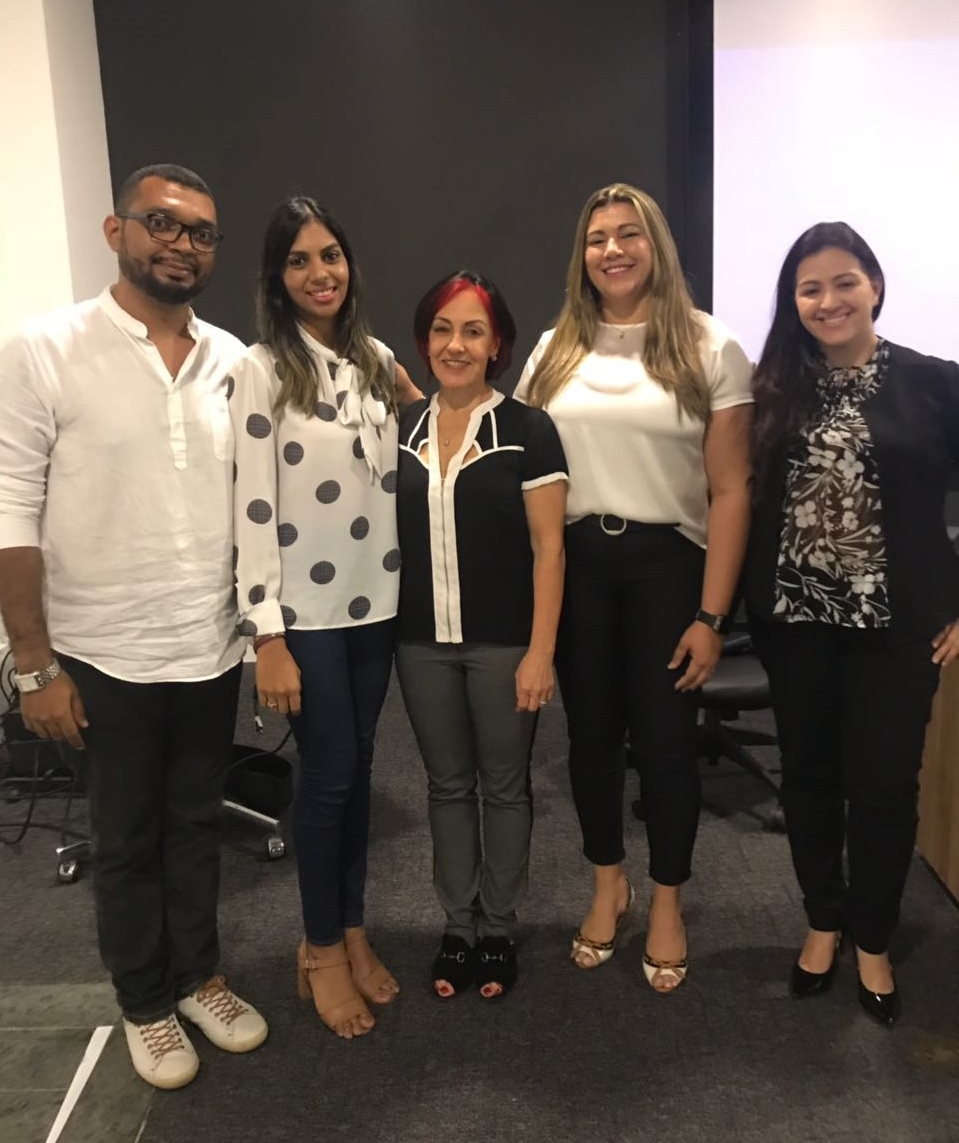 Dra Elaine Markondes (ao meio), com integrantes da Câmara Técnica de Pilates do CREFITO-16, Dr. Rafael Marinho, Dra. Ana Priscila, Dra Luciana Lica e Dra. Louise Gondim.
