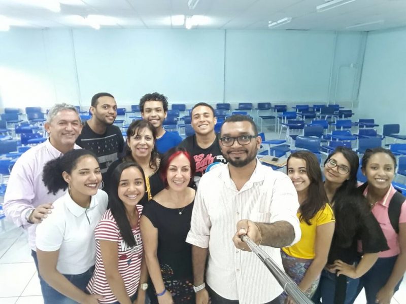Componente da Câmara Técnica de Pilates do CREFITO-16, Rafael Marinho, com alunos da Faculdade Maurício de Nassau.