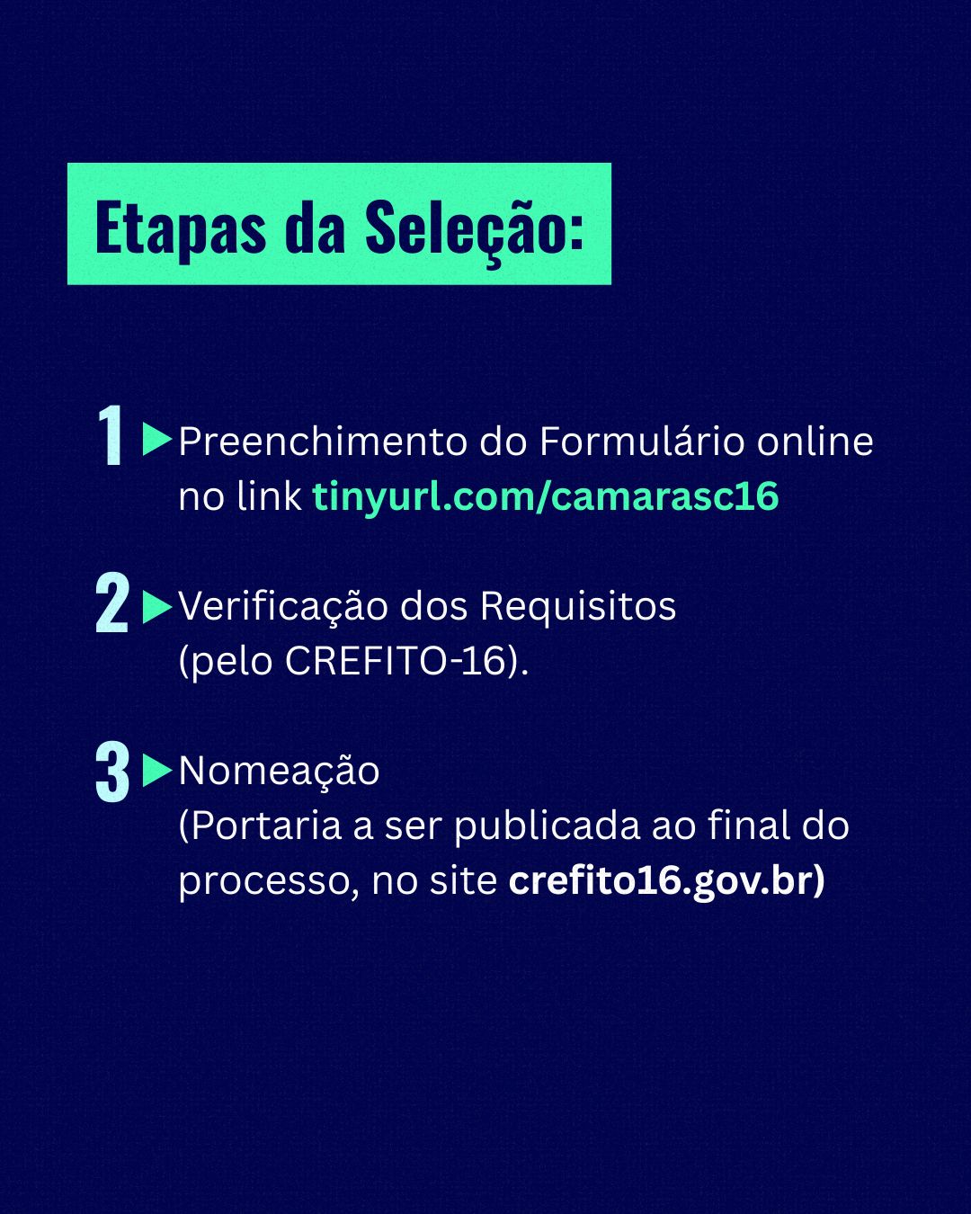 Inscrições: 10/12 a 22/12/2025. 🔗 Acesse e candidate-se: tinyurl.com/camarasc16.