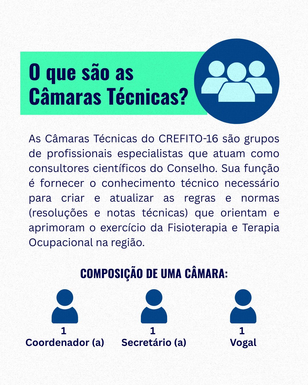 As Câmaras Técnicas são espaços estratégicos de consultoria científica, responsáveis pela elaboração de pareceres e notas técnicas que fortalecem a atuação institucional do CREFITO-16 e garantem um exercício profissional cada vez mais qualificado.