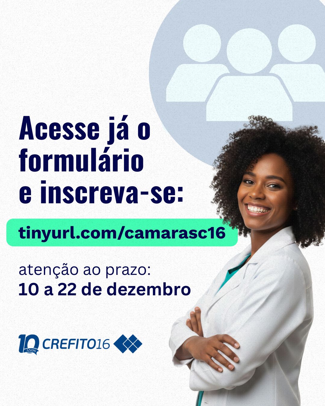 O prazo para a seleção de membros das Câmaras Técnicas do CREFITO-16 foi prorrogado até 30 de dezembro! Se você é fisioterapeuta ou terapeuta ocupacional com especialidade, chegou o momento de colocar seu conhecimento a serviço da profissão.