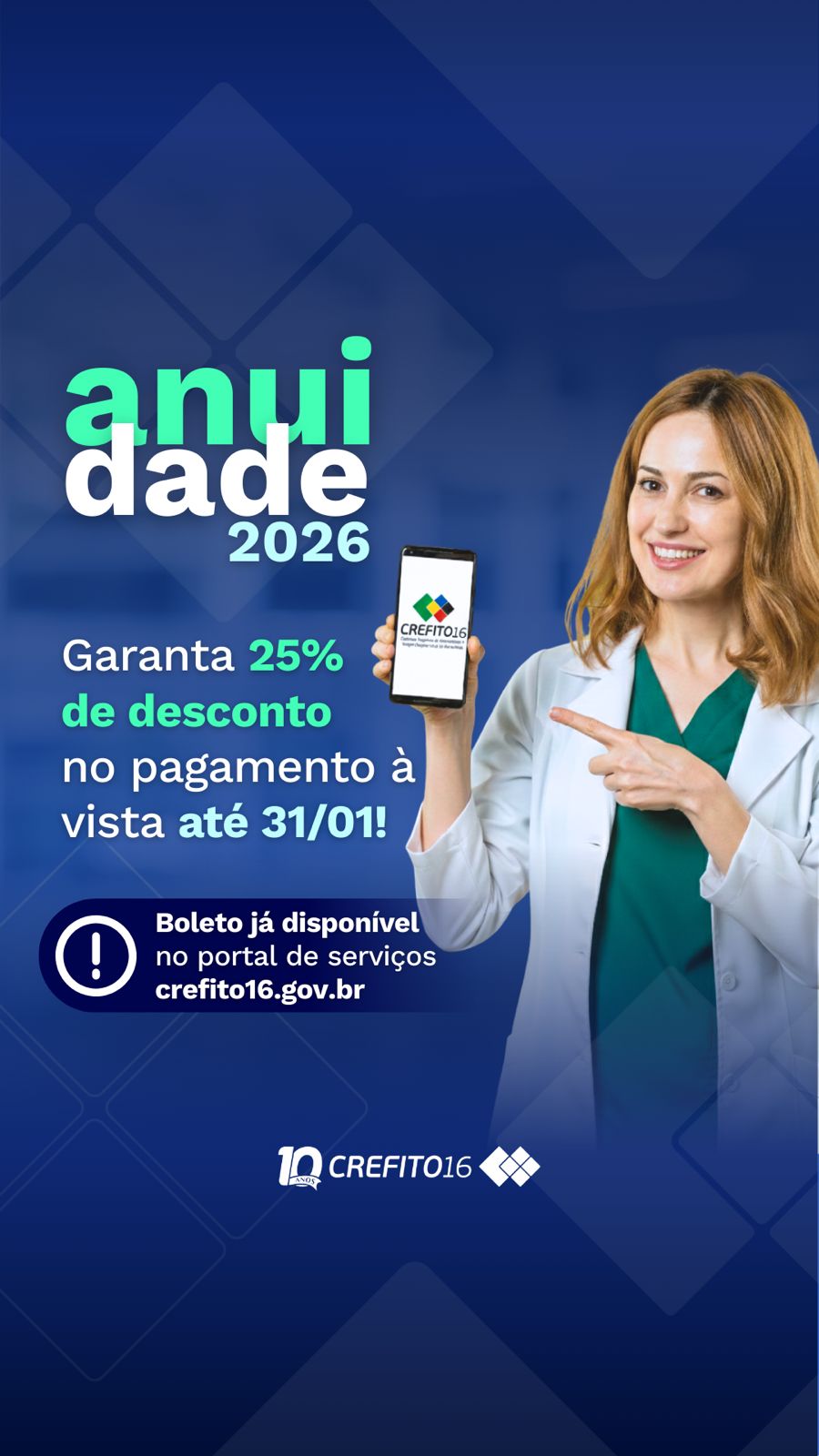 #Crefito16 #Anuidade2026 #Desconto #ServiçosOnline #Fisioterapia #TerapiaOcupacional