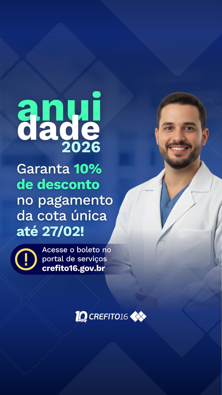 💰 Aproveite essa condição, acesse o Portal de Serviços do CREFITO-16, emita seu boleto e regularize sua situação.