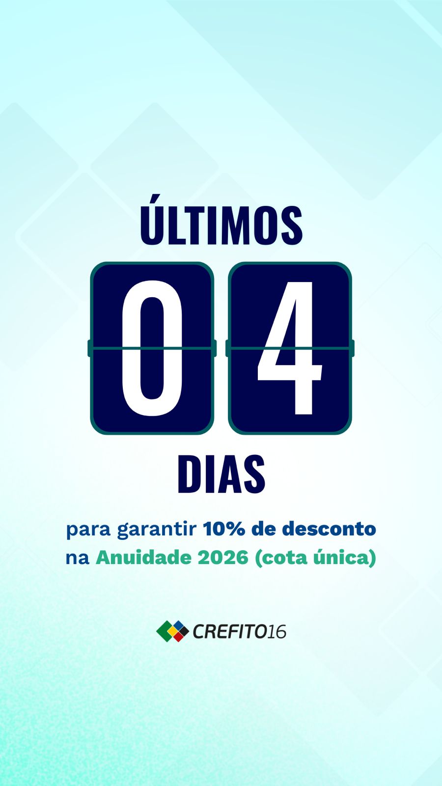 ⏳ Aproveite os 10% de desconto no pagamento da anuidade 2026, em cota única.