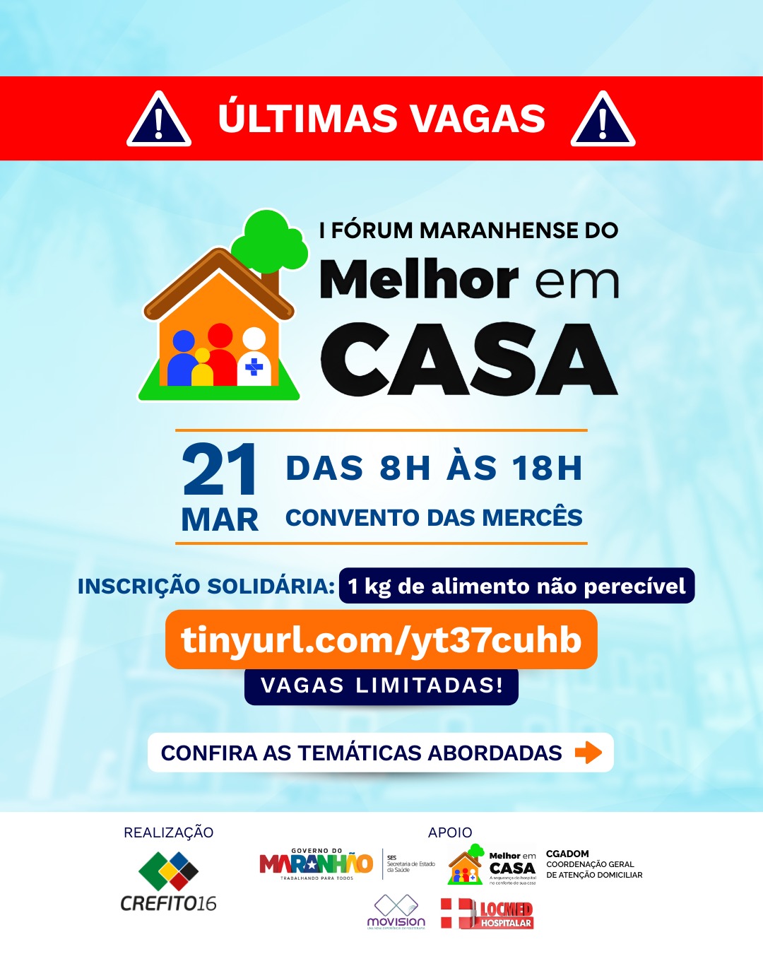 A Mostra integra a programação do I Fórum Maranhense do Programa Melhor em Casa, um espaço de troca de conhecimentos, integração entre profissionais e fortalecimento das práticas de cuidado domiciliar no Maranhão.