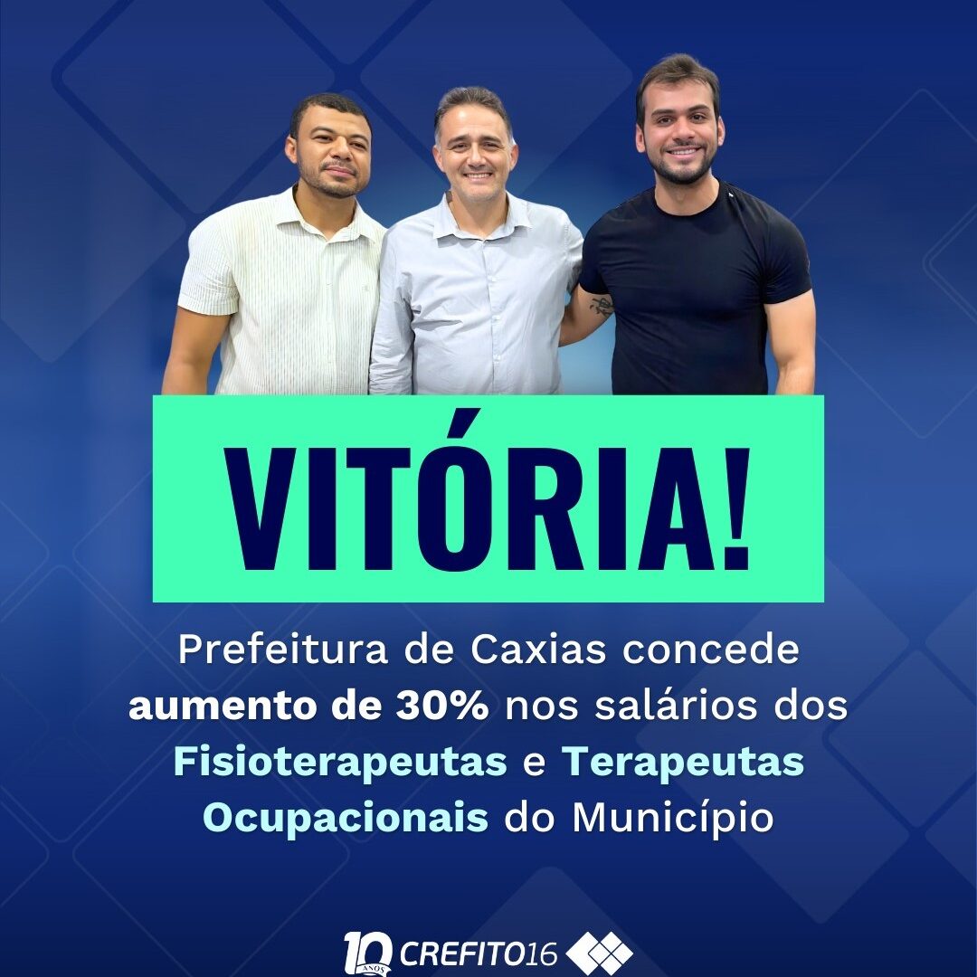 Vitória! Prefeitura de Caxias concede reajuste de 30% nos salários dos Fisioterapeutas e Terapeutas Ocupacionais do Município